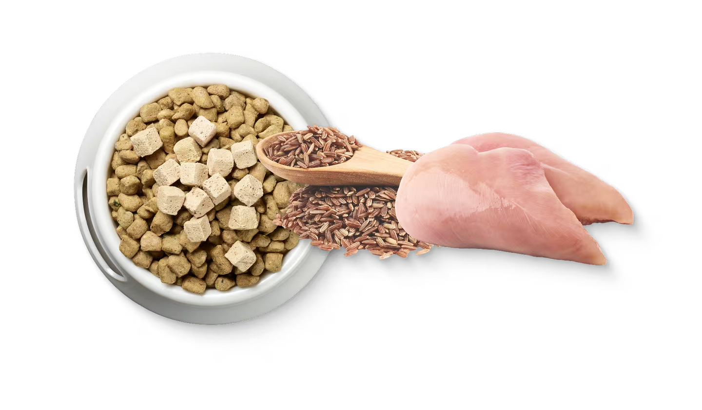 They’re freeze-dried meaty bites made from premium chicken, blended with wholesome brown rice. Packed with protein and savory chicken flavor, they’re perfect as a tasty treat or sprinkled as a topper on your pup’s meals.